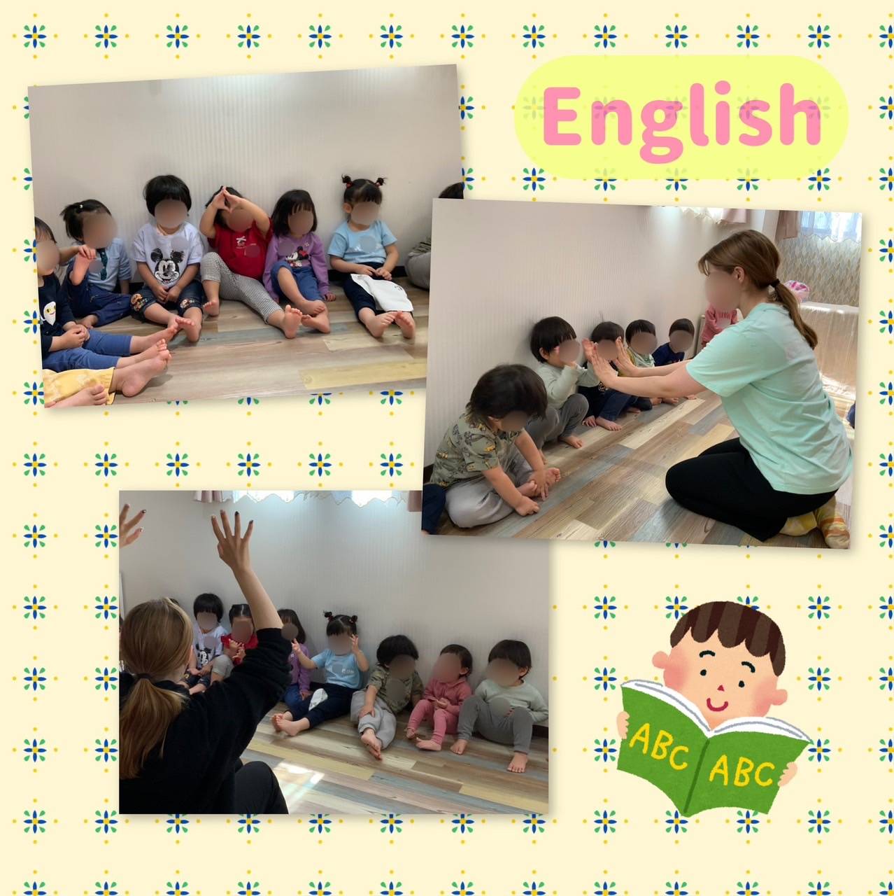内容 : 歌や簡単なQ&A形式の英会話、ゲーム、ダンス、制作等で英語に
